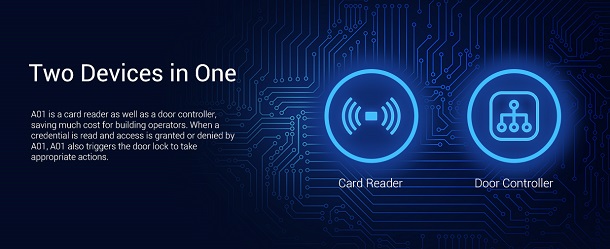 Akuvox A01S access control terminal incorporates door controller and an RIFD reader in one standalone device, thus saving your solution costs. Equipped with an RFID reader (125kHz & 13.56MHz) which is capable of handling a majority of cards in wide use currently. A01S is designed to provide you with greater flexibility and security than those traditional access control systems.