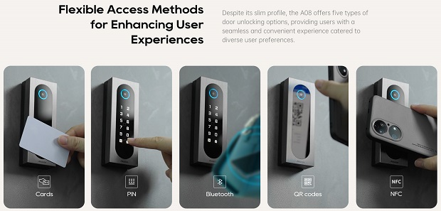 • Multiple access control methods: QR Code, Bluetooth, PIN, RFID