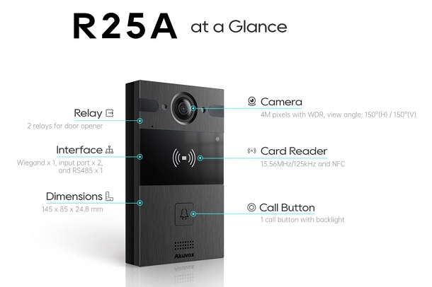 Akuvox R25A On-wall Single-button IP Video Door Phone with 4Mp Wide-angle Camera and RFID Card Reader