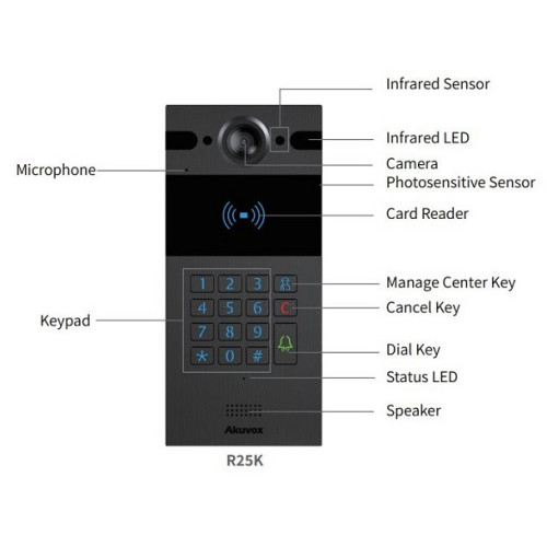 Akuvox R25K IP Video Door Phone with Keypad, 4Mp Ultra Wide-angle Camera with WDR technology and RFID Card Reader