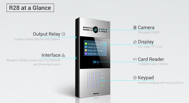 Akuvox R28A On-Wall Mounted IP Video Door Phone with Keypad, LCD Display & RFID Card reader