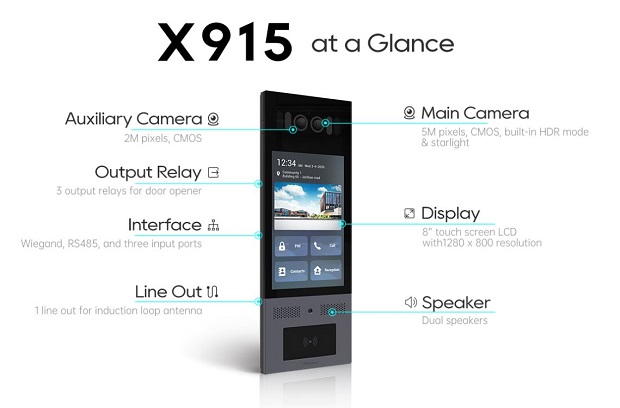 Akuvox X915S is designed to provide a visually stunning and intuitive user experience. It brings a number of innovative new features to provide a fully customizable solution for occupant and visitor access control in condominiums, apartment buildings, office buildings, gated communities and industrial buildings.