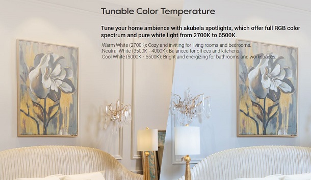 The Akubela ZigBee smart spotlight uses low-power LED beads and a dedicated constant current power supply, reducing energy consumption and heat generation while extending the lifespan of the light. The product is radiation-free and complies with environmental standards, offering both safety and sustainability. Suitable for various indoor places such as hotels, shopping malls, exhibition halls, restaurants, and offices, it provides an elegant lighting atmosphere that enhances the ambiance and style of any room.
