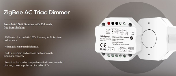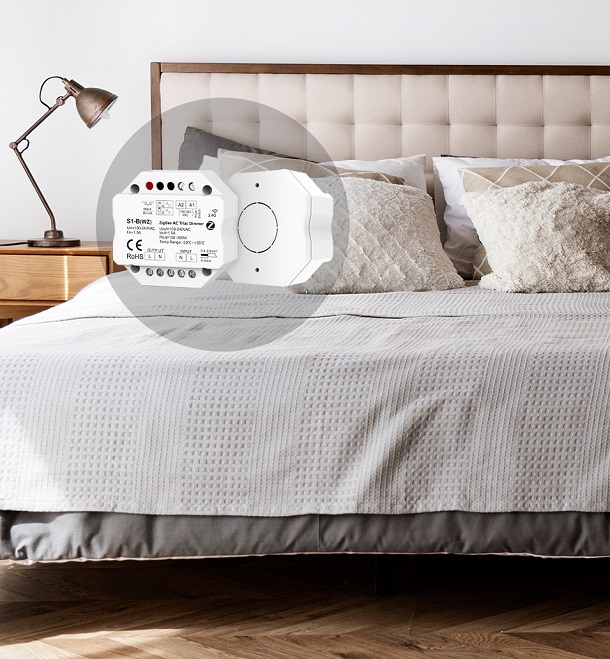 The Akubela ZigBee AC triac dimmer S1-B(WZ) boasts exceptional dimming capabilities, supporting 256 levels of smooth 0-100% brightness adjustment for a flicker-free, comfortable lighting experience. It supports both leading-edge and trailing-edge modes, ensuring compatibility with various dimmable LED lights and silicon-controlled dimming power supplies. Featuring built-in overheat and overload protection with automatic recovery, it provides enhanced safety and reliability for users.