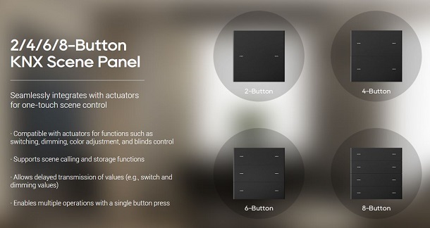 The Akubela KNX smart scene panel offers quick control by linking to switch loads, dimmers, and smart scenes, catering to various user needs. It comes in 2/4/6/8-button options, featuring a minimalist and intuitive design. As an advanced smart keypad panel, it brings enhances convenience and intelligence control to modern homes.