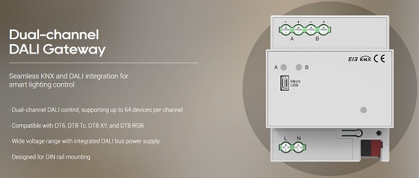 - Dual-channel DALI control, with up to 64 devices per channel