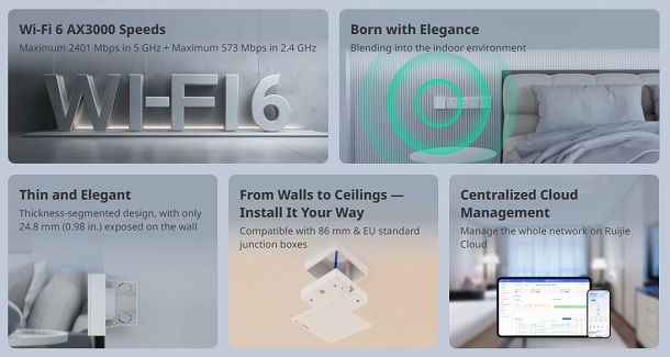 Ruijie-Reyee RG-RAP62-Wall-Lite Wi-Fi 6 AX3000 Dual-Band Wall-Plate Indoor Access Point