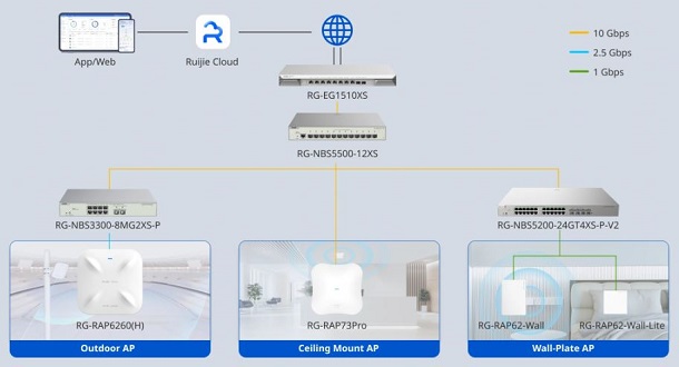 - Configuration synchronization among the app, eWeb, and Ruijie Cloud