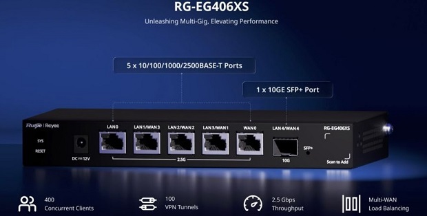 Ruijie-Reyee RG-EG406XS 6-Port Multi-Gigabit Cloud Managed Router with 5x 2.5G Ports and 1x 10G SFP+ port