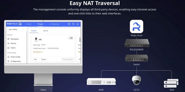 - Lifetime free management on Ruijie Cloud anytime, anywhere.