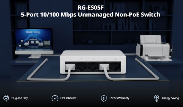 Ruijie-Reyee RG-ES05F 5-Port 10/100 Mbps Unmanaged Switch